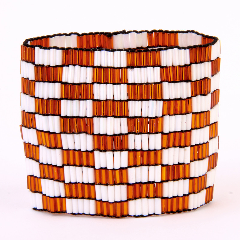 10 Row Mosaic Stretch Bracelet in Orange & White.