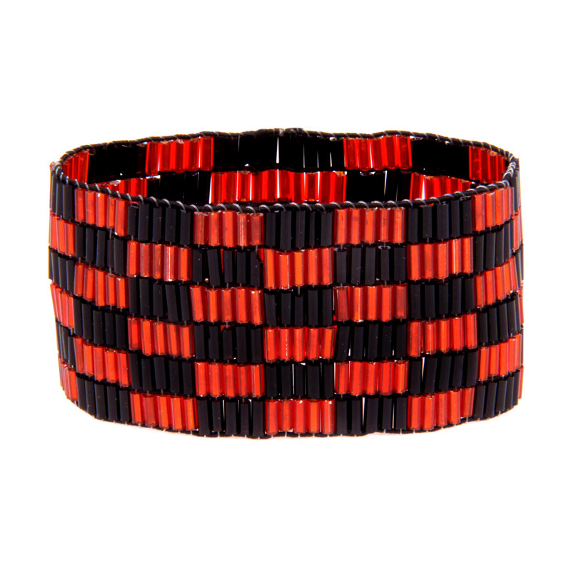 6 Row Mosaic Cuff in Black & Red.