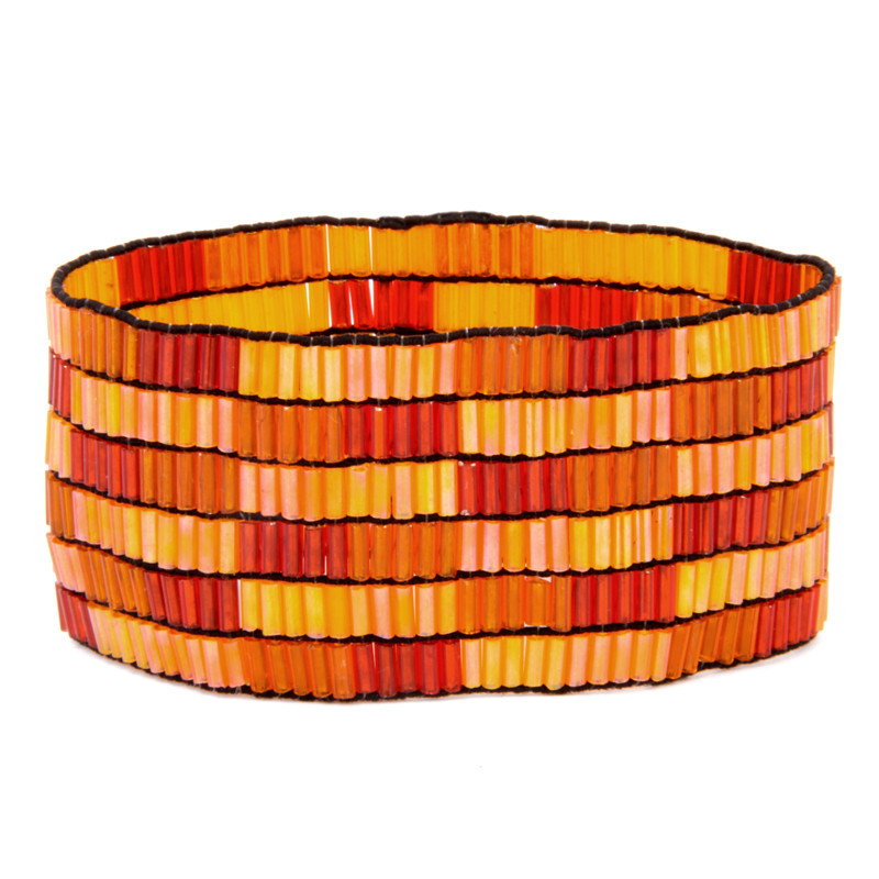 6 Row Mosaic Cuff in Red, Gold, Orange.