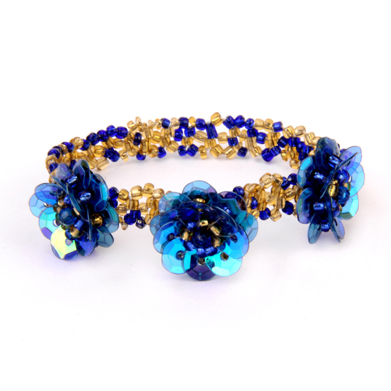 3 Rose Stretch Bracelet in Blue & Gold.