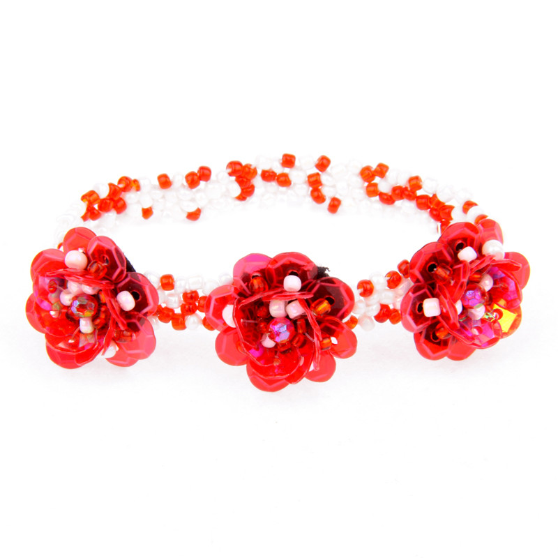 3 Rose Stretch Bracelet in Red & White.