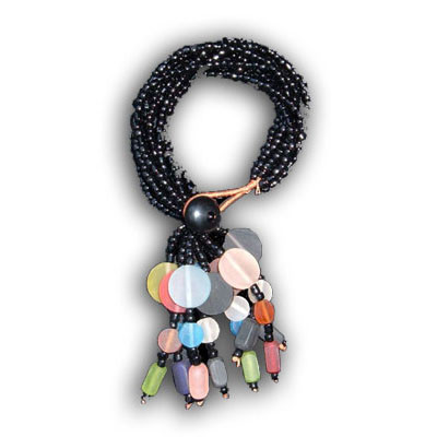 Multi-Strand Bracelet with Resin Bead Fringe in Black, Multi.