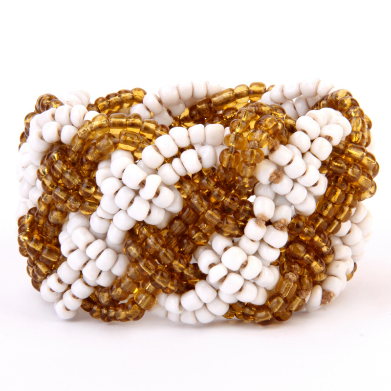 Braided Bead Bracelet in Gold & White.