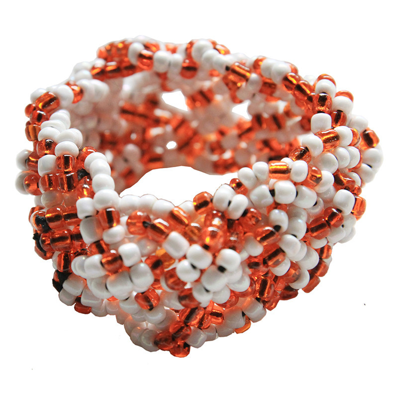 Braided Bead Bracelet in Orange & White.