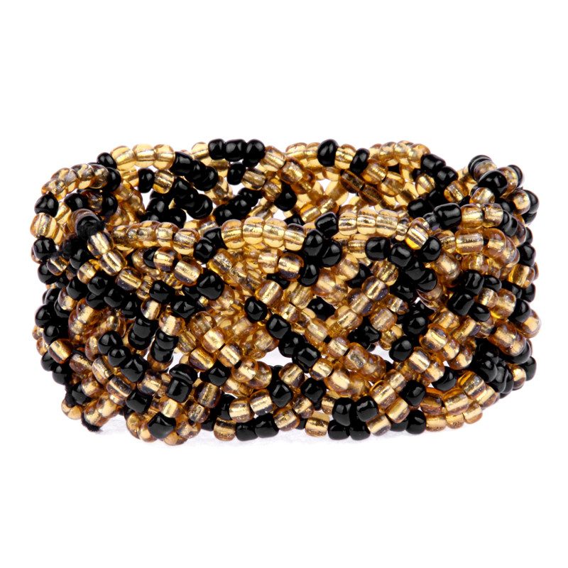 Braided Bead Bracelet in Mixed Black & Gold.