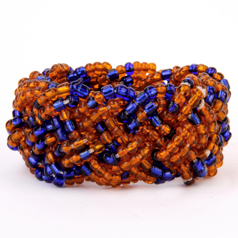 Braided Bead Bracelet in Mixed Orange & Blue.