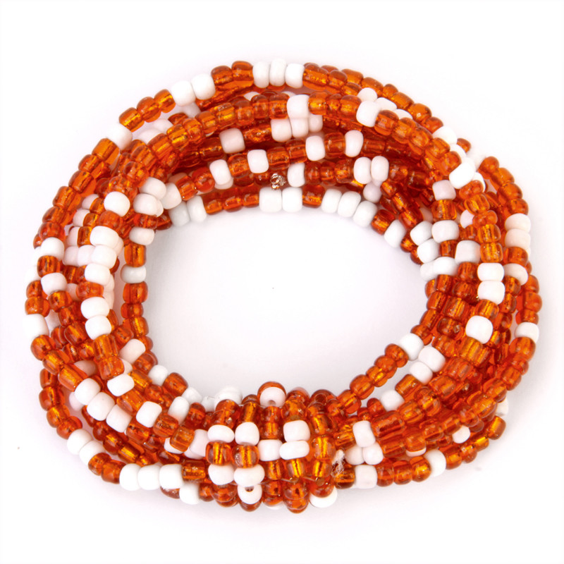 Knotted Beaded Stretch Bracelet in Orange & White.
