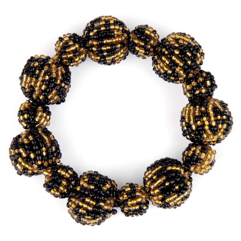 Beaded Ball Stretch Bracelet in Black & Gold.