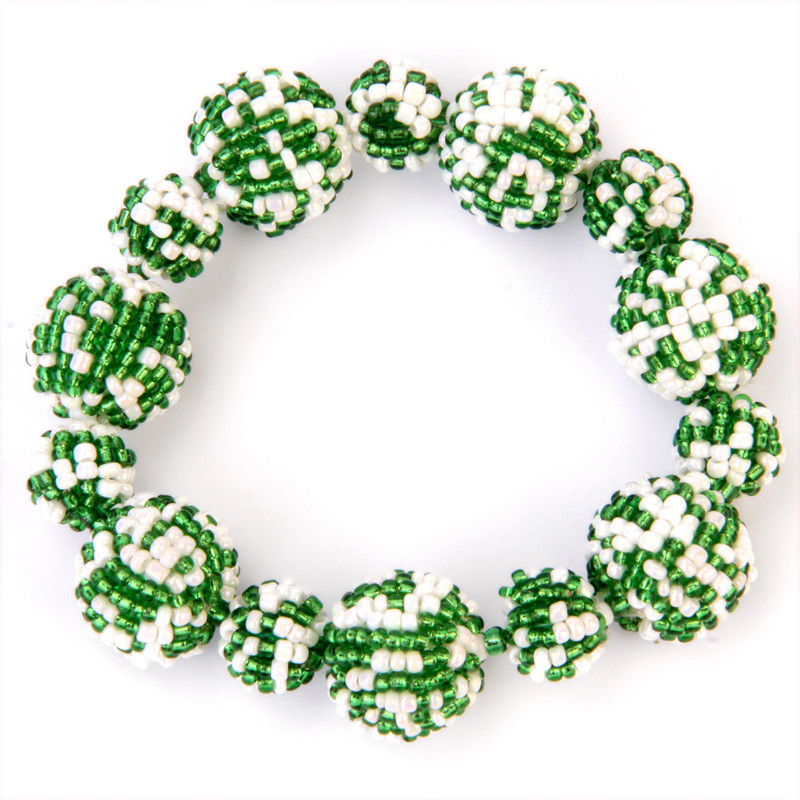 Beaded Ball Stretch Bracelet in Green & White.