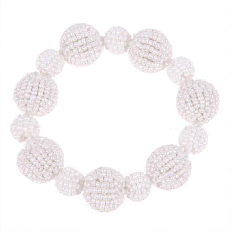 Beaded Ball Stretch Bracelet in White.