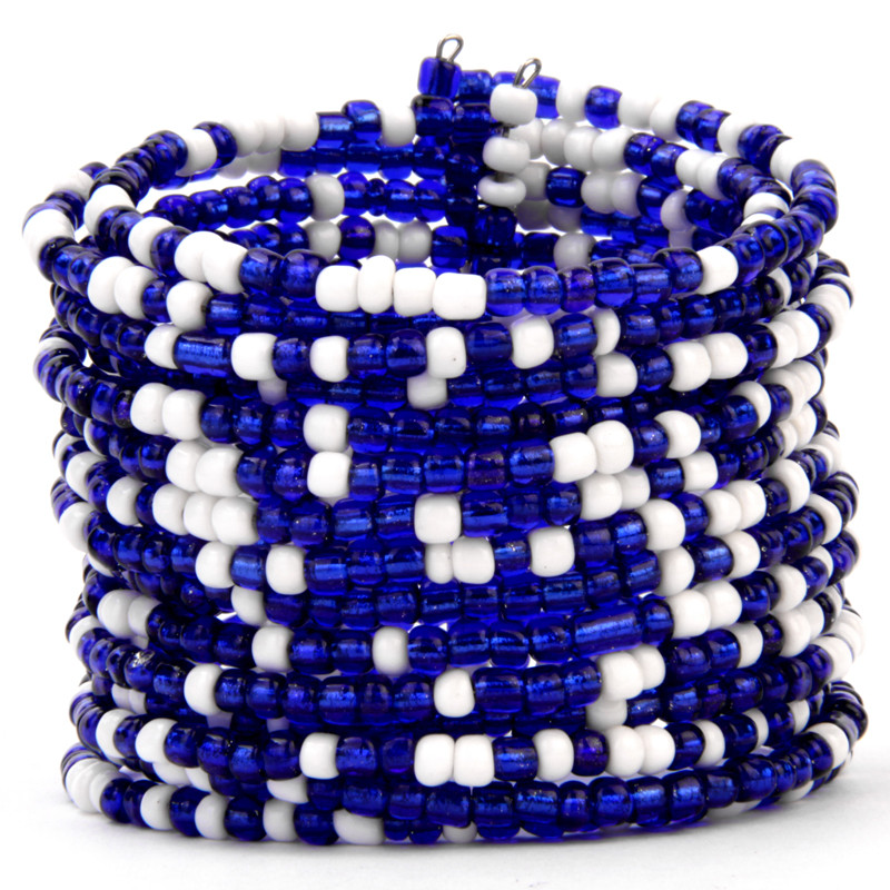 Beaded Wire Cuff in Blue & White.