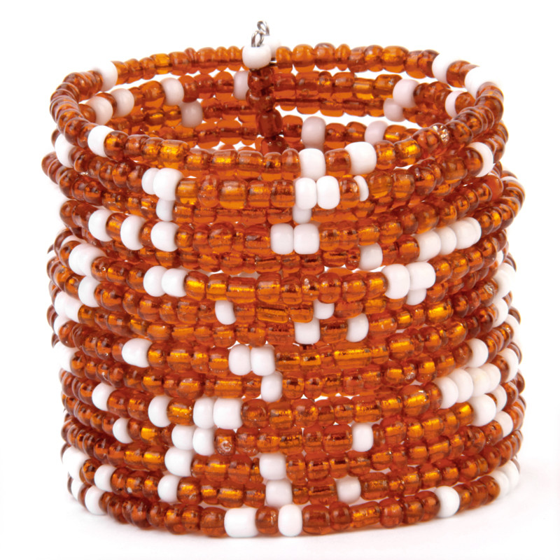 Beaded Wire Cuff in Orange & White.