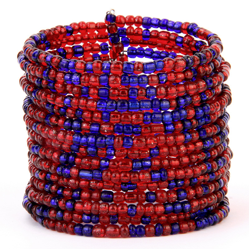 Beaded Wire Cuff in Red & Blue.