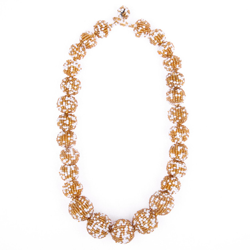 27 Graduated Ball Necklace in Gold & White.