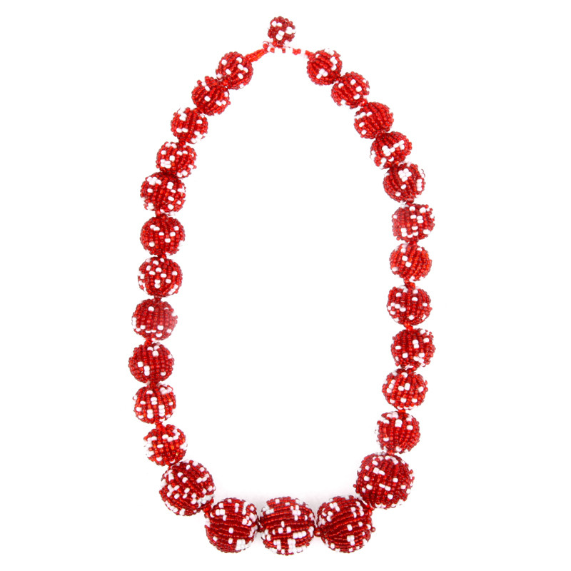 27 Graduated Ball Necklace in Red & White.