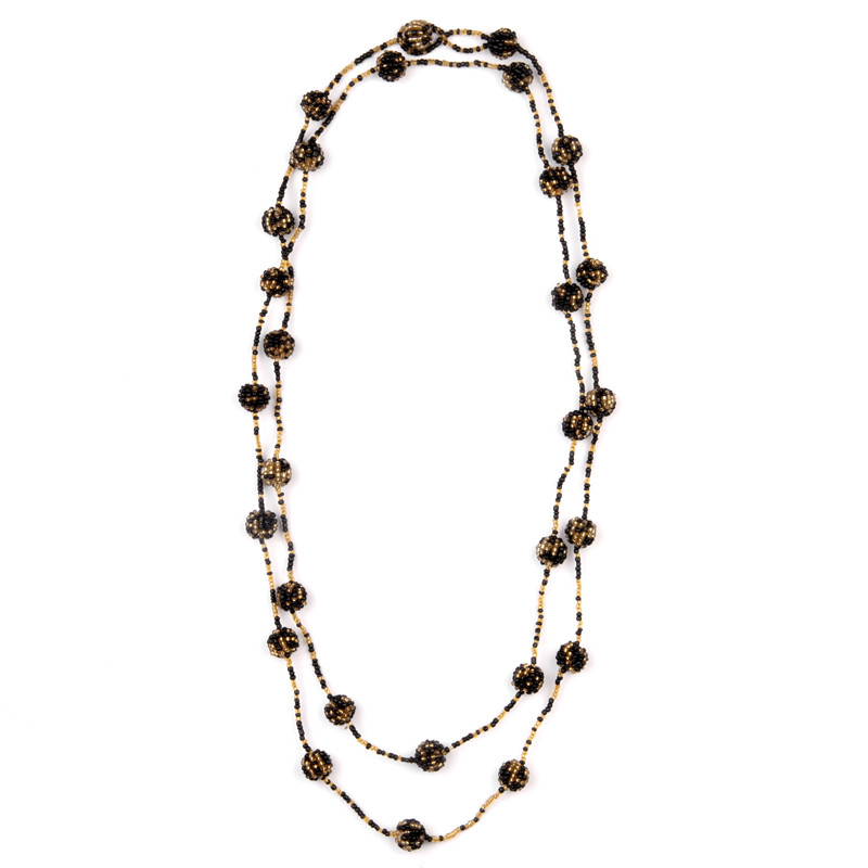 60" Long Beaded Ball Necklace in Black & Gold.