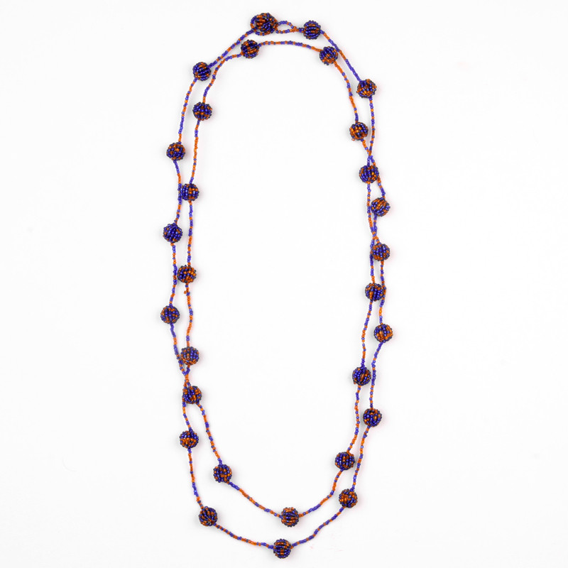 60" Long Beaded Ball Necklace in Orange & Blue.