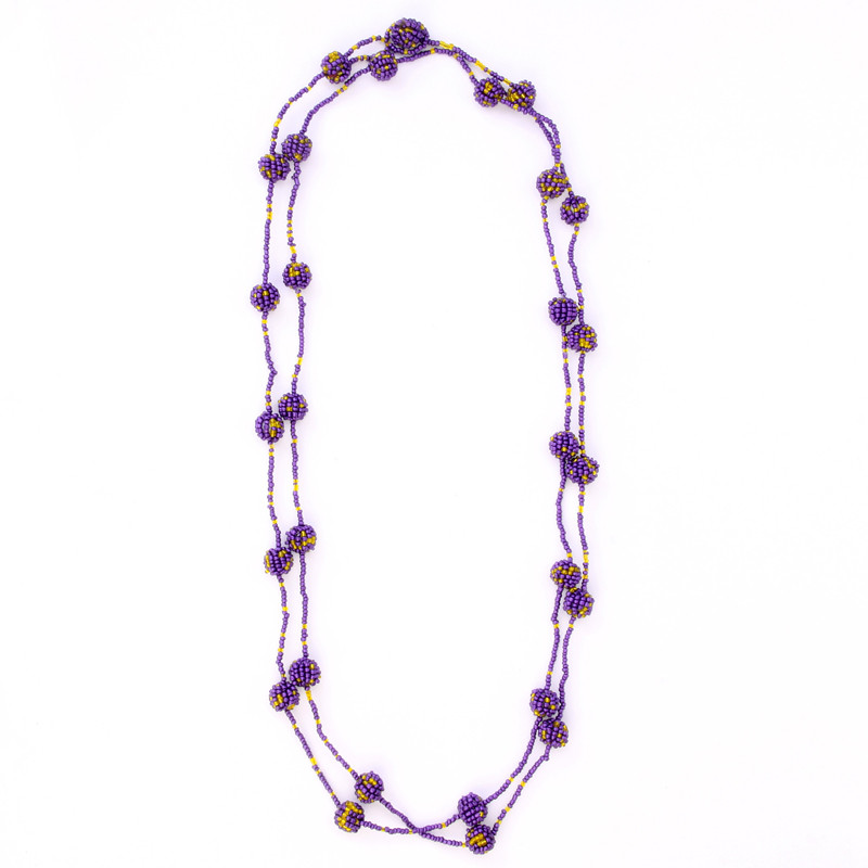 60" Long Beaded Ball Necklace in Yellow & Purple.