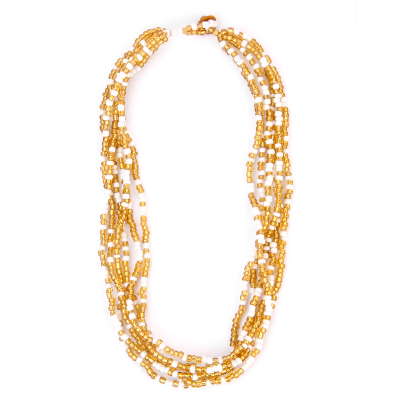6 Strand Bead Necklace in Gold & White.