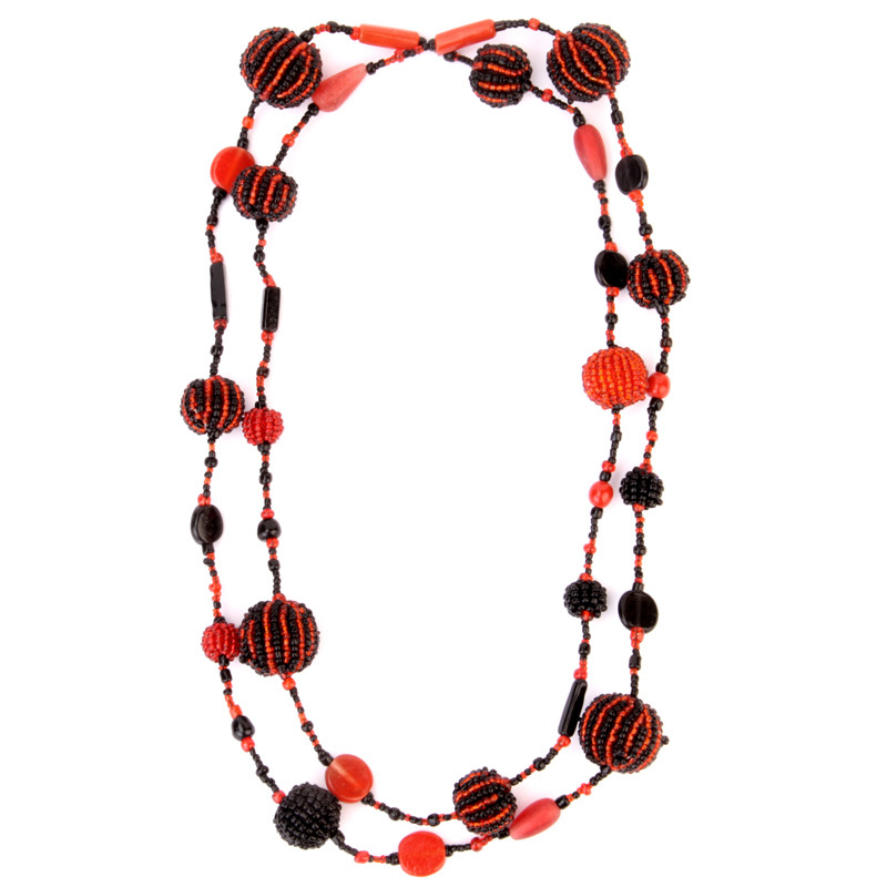 48'' Stripe Ball Necklace in Black & Red.