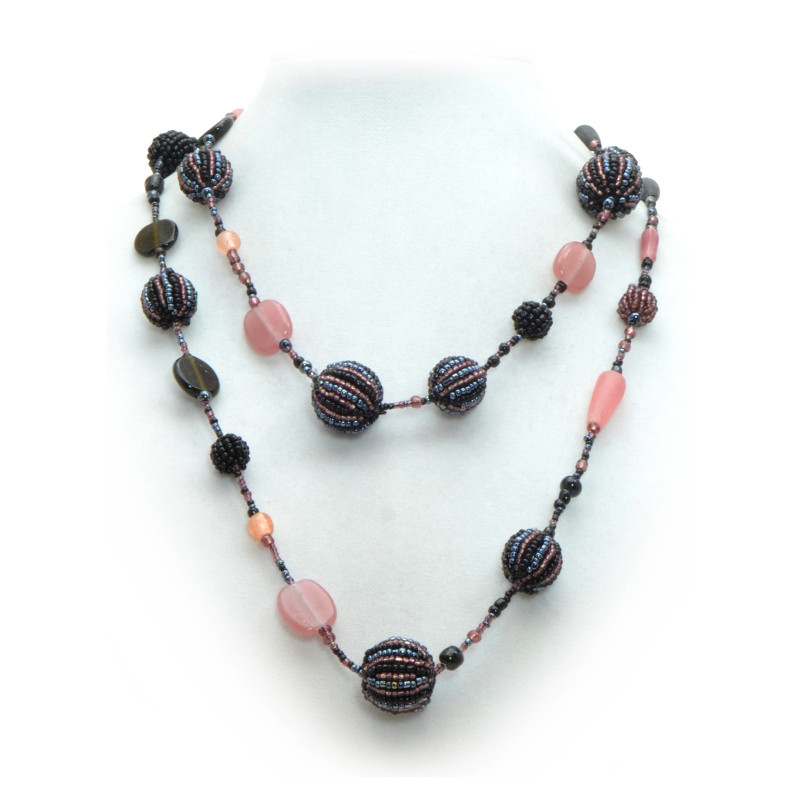 48'' Stripe Ball Necklace in Mixed Black, Gunmetal, Pink.
