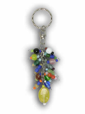Key ring attached to beaded chain. Assorted, mixed colors.