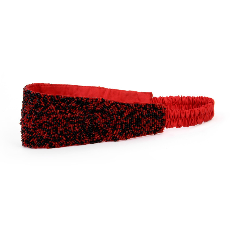 Deco pattern beaded headband with elastic.