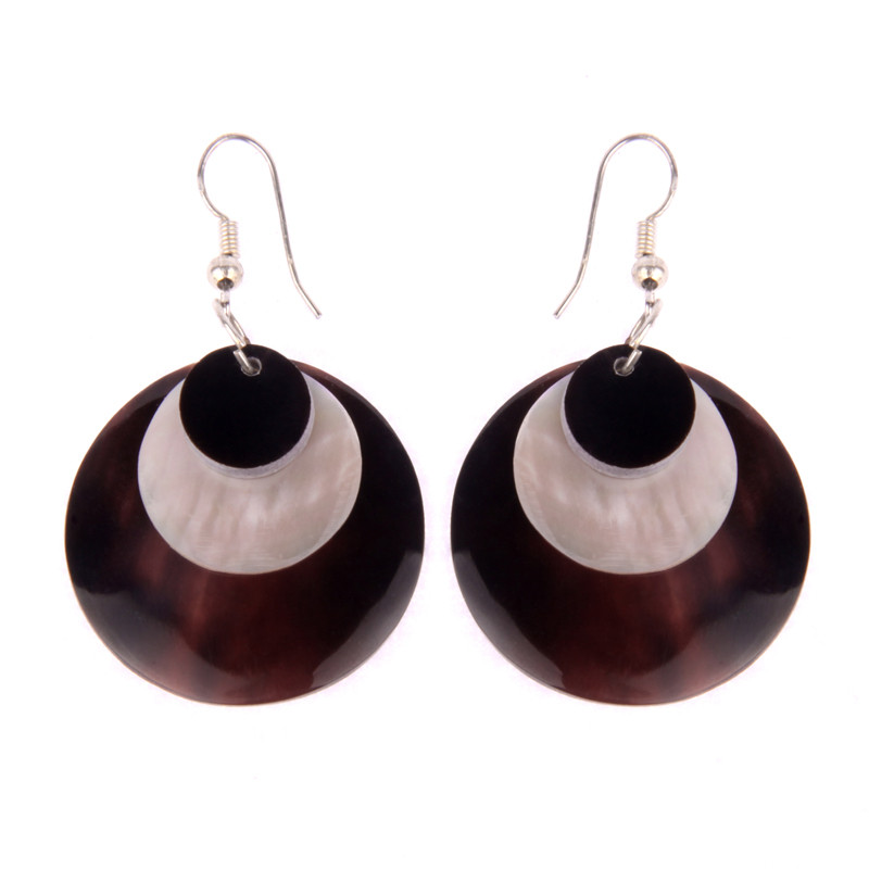 Triple Circle Mother of Pearl Earrings, Shell, Cream, Brown.