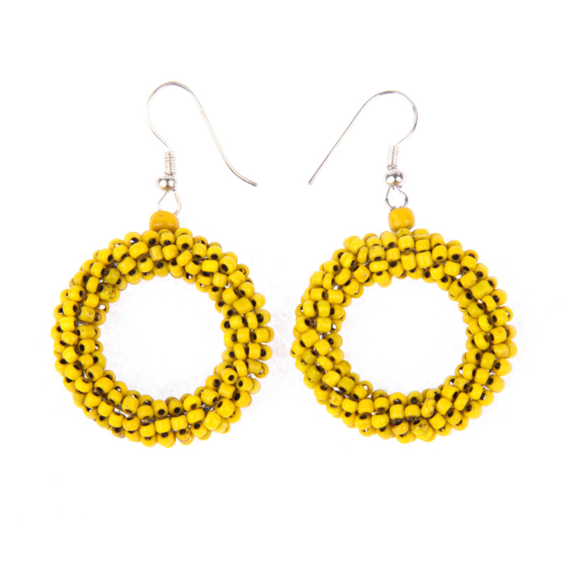 Beaded Donut Circle Earrings in Antiqued Yellow.