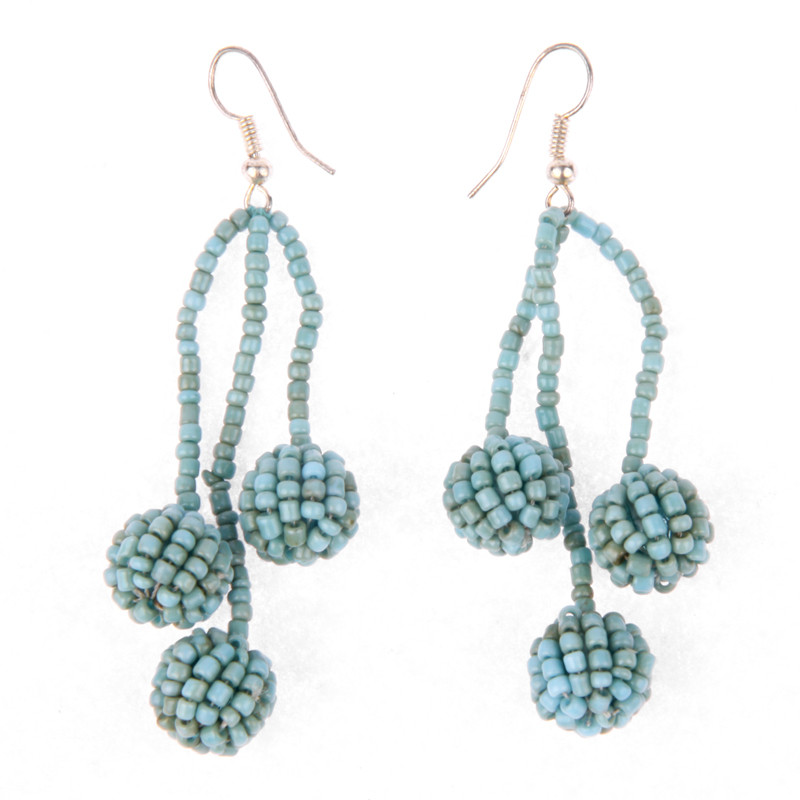 3 Beaded Ball & Strand Drop Earrings in Antiqued Turquoise.