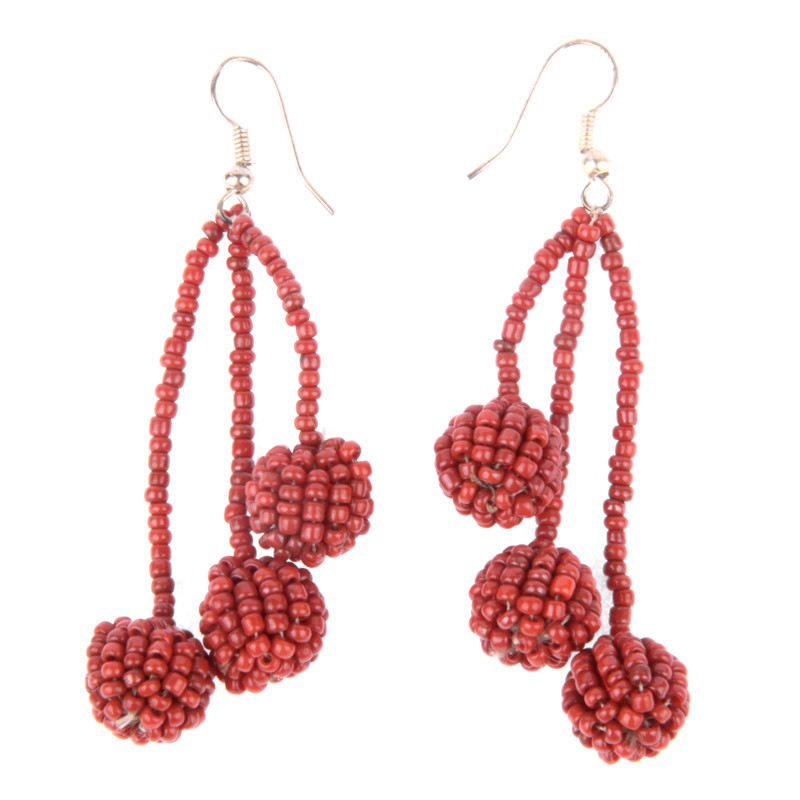 3 Beaded Ball & Strand Drop Earrings in Antiqued Coral.