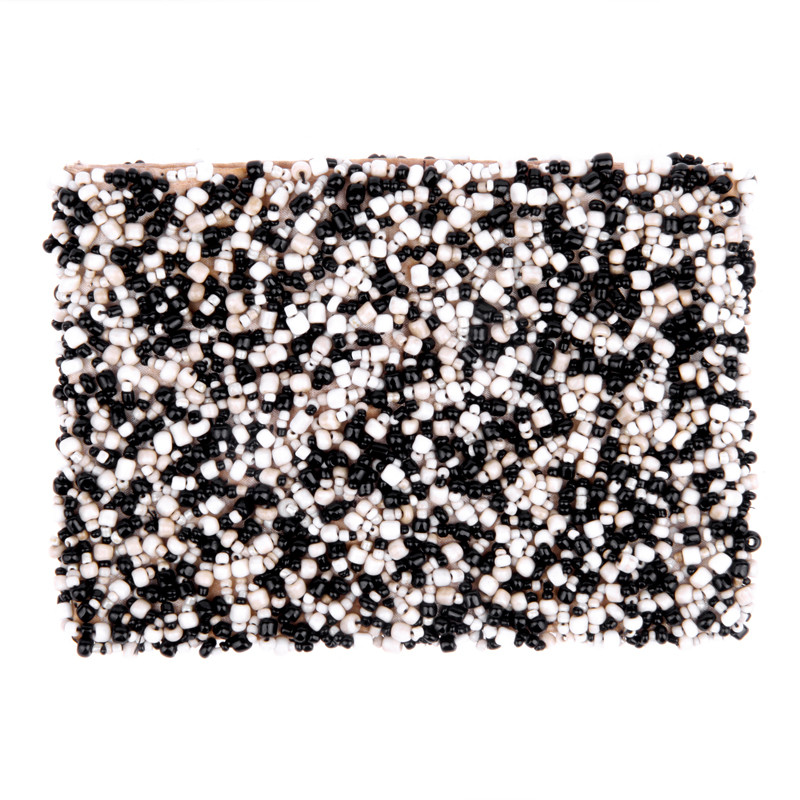 Over Beaded Coin Purse in Cream, Black.