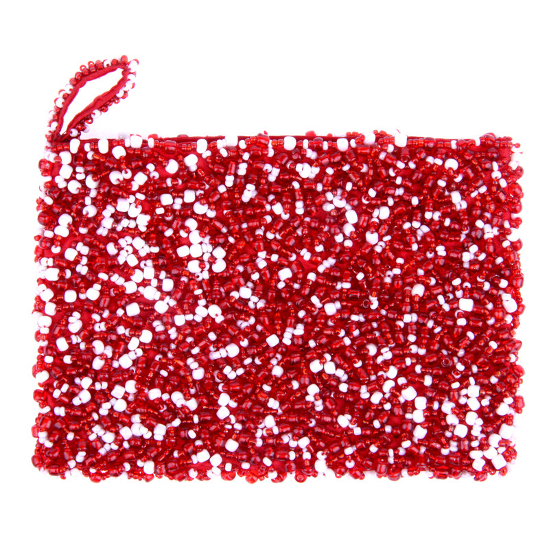 Over Beaded Coin Purse in Red & White.