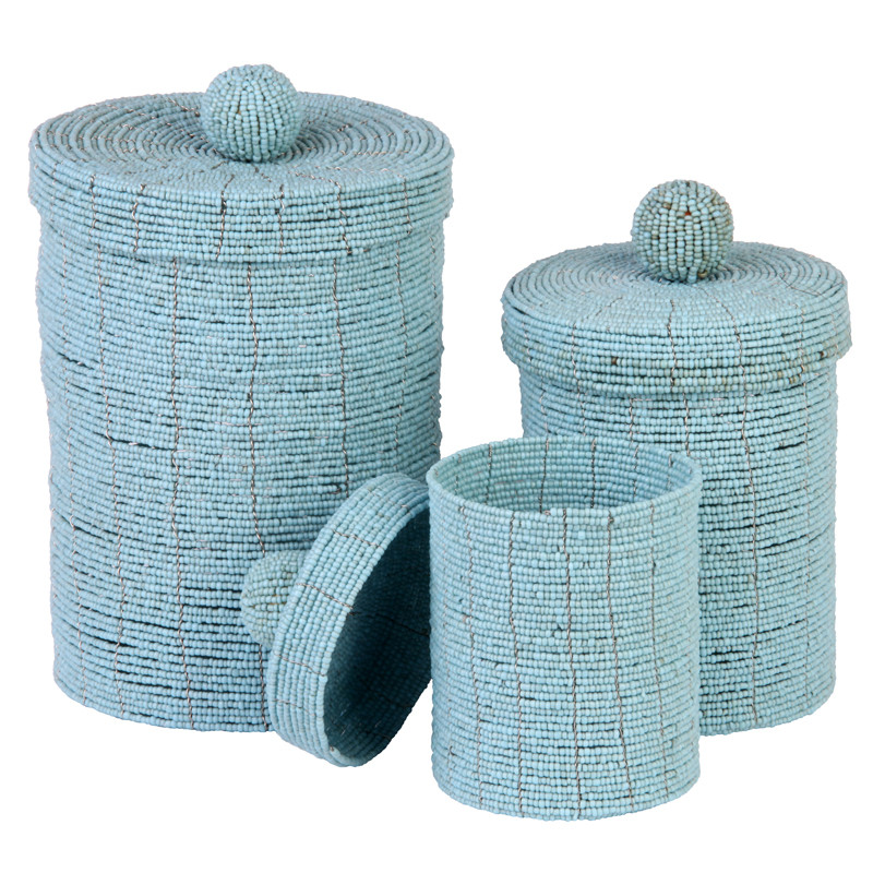 3Pc Set Of Nested Bead & Wire Jars in Antiqued Turquoise.
