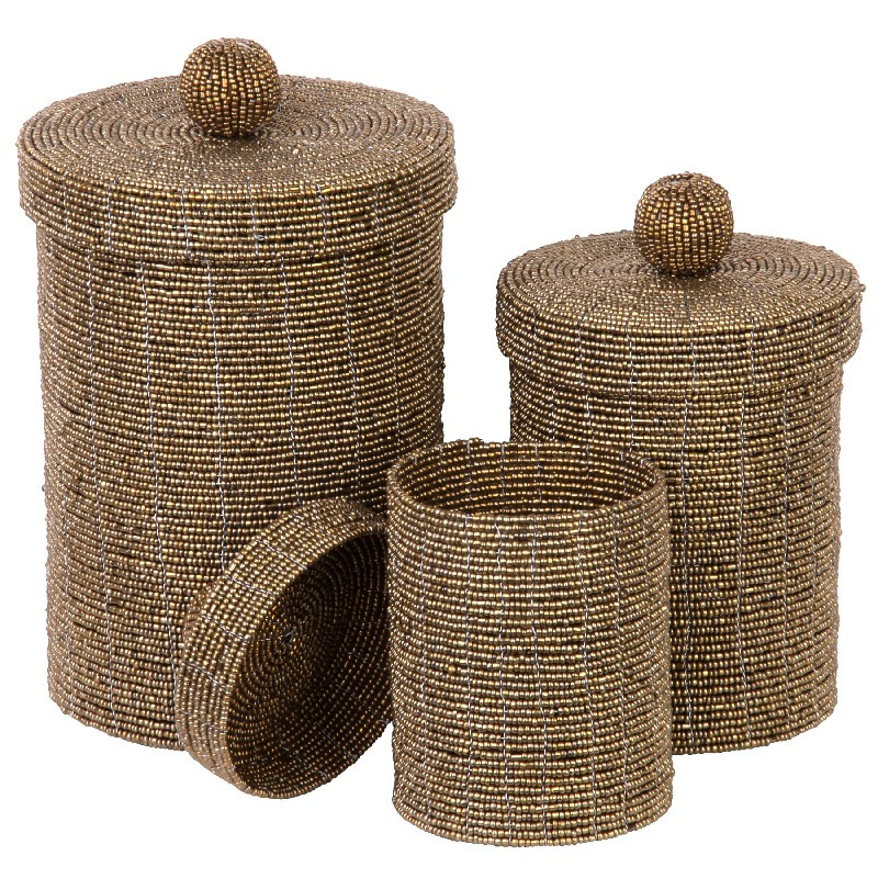 3Pc Set Of Nested Bead & Wire Jars in Bronze.