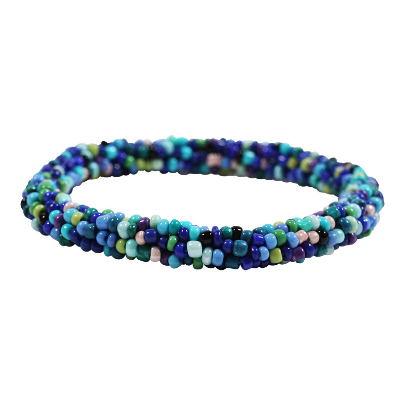 Beaded Roller Bracelet in Mixed Blue, Turquoise.