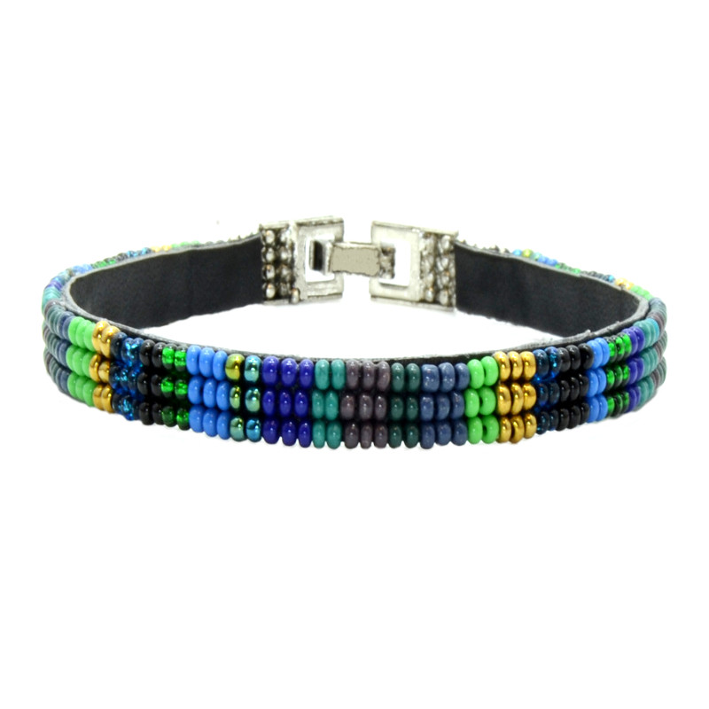 Soan 3 line, color block bracelet. Appliqued, metal clasp closure.