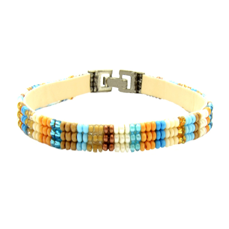Soan 3 line, color block bracelet. Appliqued, metal clasp closure.