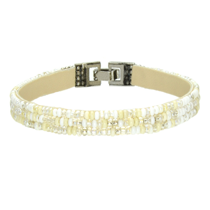 Soan 3 line, mixed pattern bracelet. Appliqued, metal clasp closure.