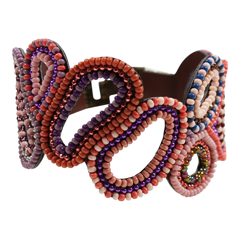 Soan abstract loop pattern bracelet. Appliqued, metal clasp closure.