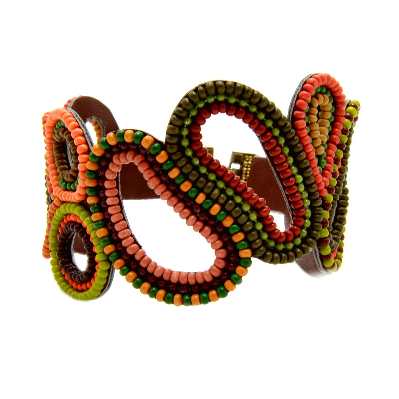 Soan abstract loop pattern bracelet. Appliqued, metal clasp closure.