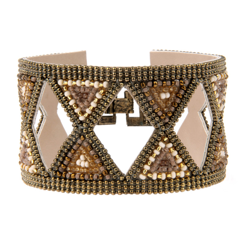 Soan hourglass pattern bracelet. Appliqued, metal clasp closure.