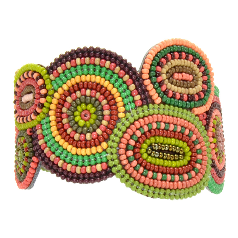 Soan ovals and circles pattern bracelet. Appliqued, metal clasp closure.