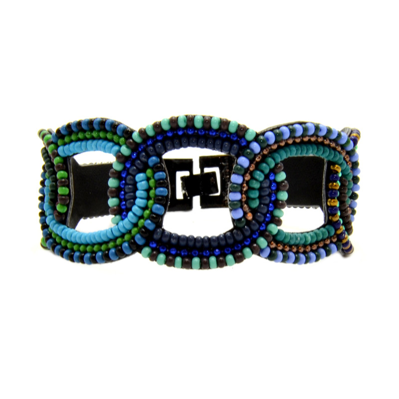 Soan interlocking oval chain bracelet. Appliqued, metal clasp closure.