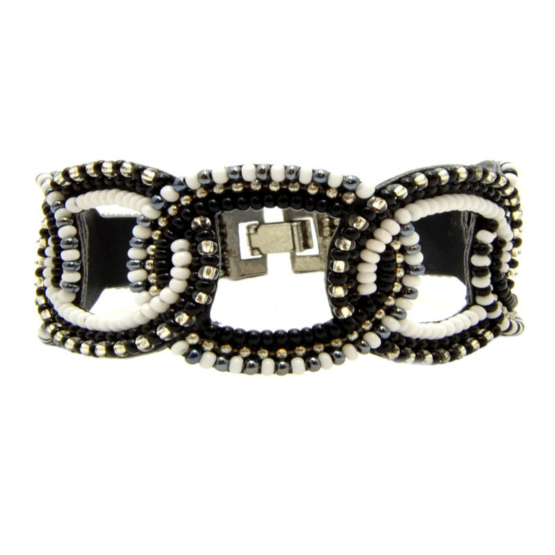 Soan Interlocking Oval Chain Bracelet in Black, White.