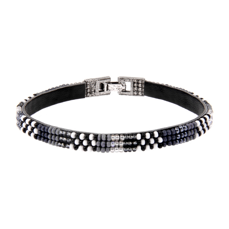 Soan 3 Row Block & Checker Bracelet in Black Grey.