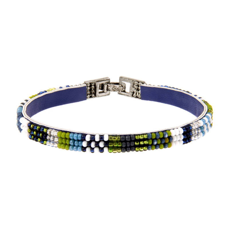 Soan 3 Row Block & Checker Bracelet in Crew Blue.