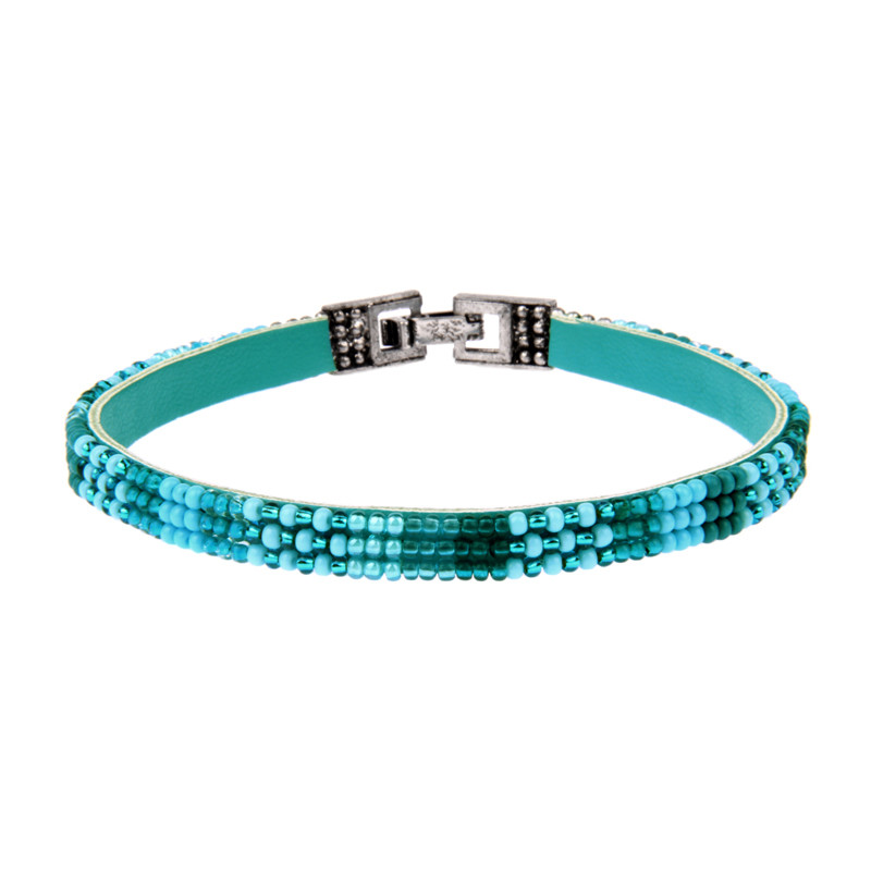 Soan 3 Row Block & Checker Bracelet in Kandara Blue.