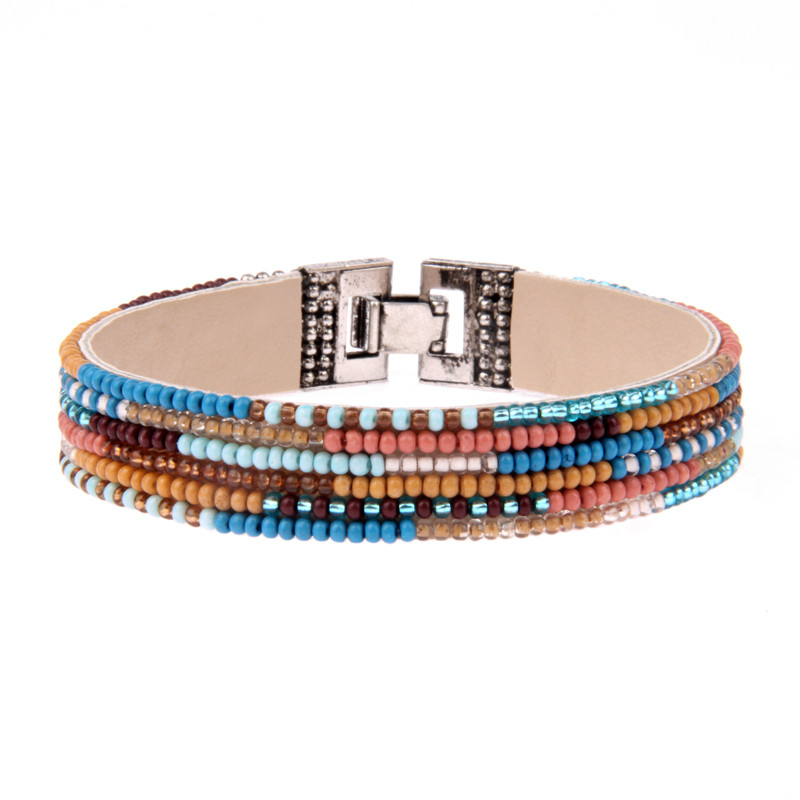 Soan 6 line stripes bracelet. Appliqued, metal clasp closure.