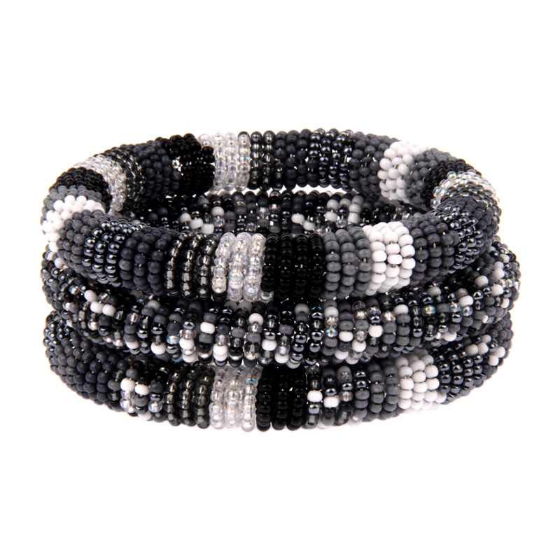 3 Pc Set of Soan Spring Coil Bracelets in Assorted Black Grey. $6ea
